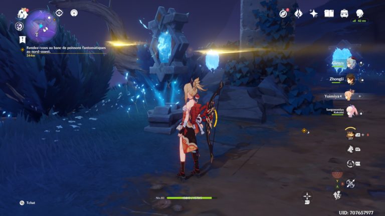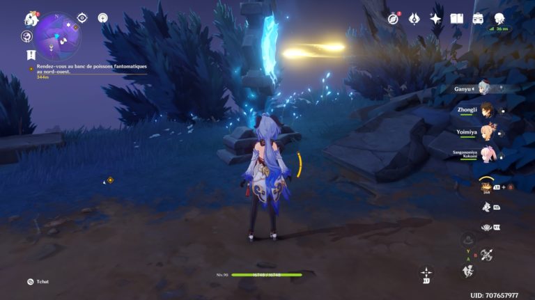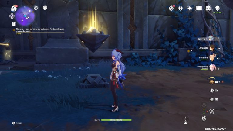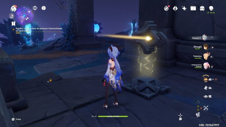 Partez cette fois-ci vers l’est comme indiqué sur votre carte, et servez-vous à nouveau du banc de poissons fantomatiques pour flotter jusqu’au portail. Pensez à desceller le téléporteur en arrivant.