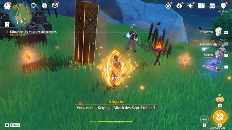 Xingqiu qui s’occupent, eux, d’un pilleur qui pourrait être le suspect dans cette affaire. Enfin, Keqing vous demande de la laisser continuer l’investigation seule, alors vous prenez congé d’elle.