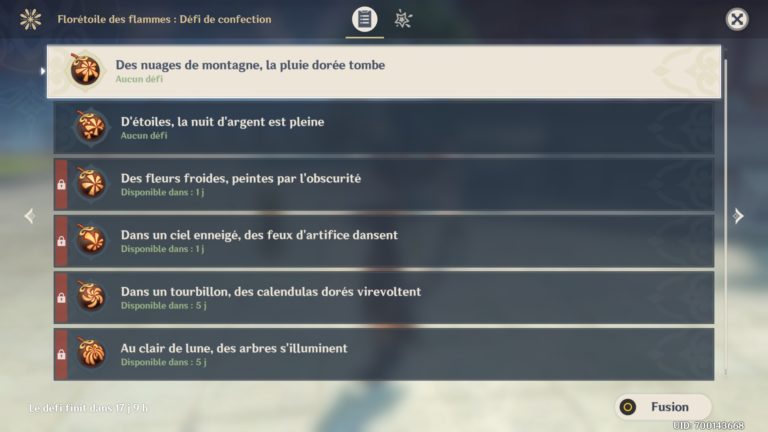 Nous vous suggérons de compléter le défi n°4 : "Dans un ciel enneigé, des feux d'artifices dansent" avant celui-ci pour avoir plus d'endurance !