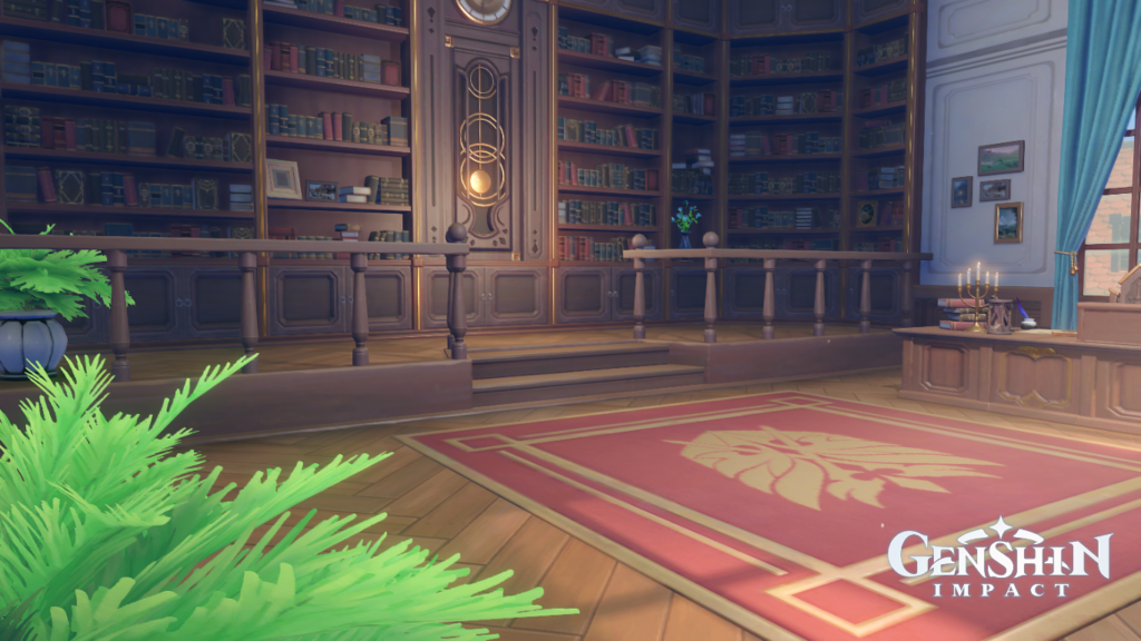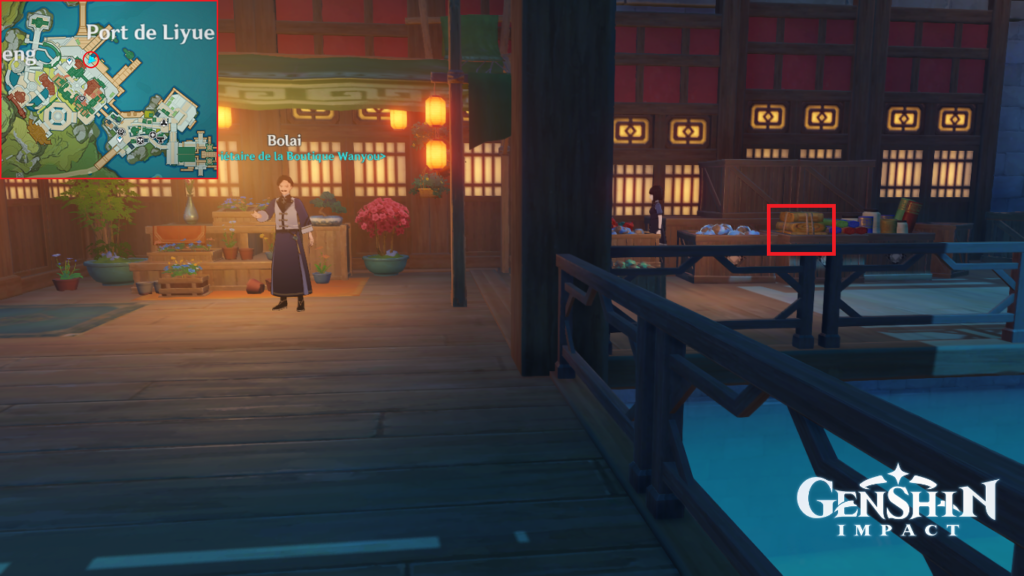 Mora à la Librairie Wanwen, au Port de Liyue.