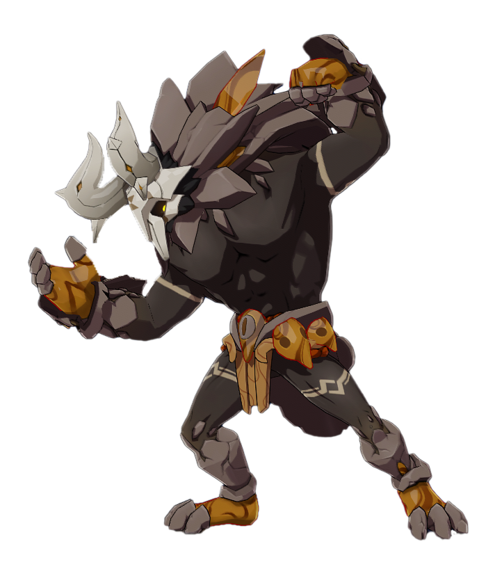 Cet énorme Brutocollinus est désigné sous le nom de « Lawa » par ses congénères. L’énergie Géo qui abonde dans son environnement a imprégné sa chair, son sang et sa peau, si bien qu’on dirait qu’il a été taillé dans la roche même qui l’entoure.