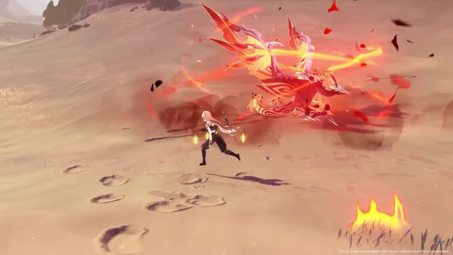 Comme son nom l’indique, il vit tapi dans les sables dorés de la nouvelle zone, cherchant à perturber la progression des voyageurs au moyen de ses capacités Anémo pour s’envoler et de ses attaques redoutables, comme sa rafale de craquelure, qui semblent être de véritables missiles Anémo.