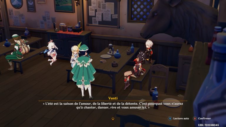 Kaeya étant en général une source (plus ou moins ?) fiable d’informations, vous décidez d’aller le chercher à la taverne du Cadeau de l’Ange.
